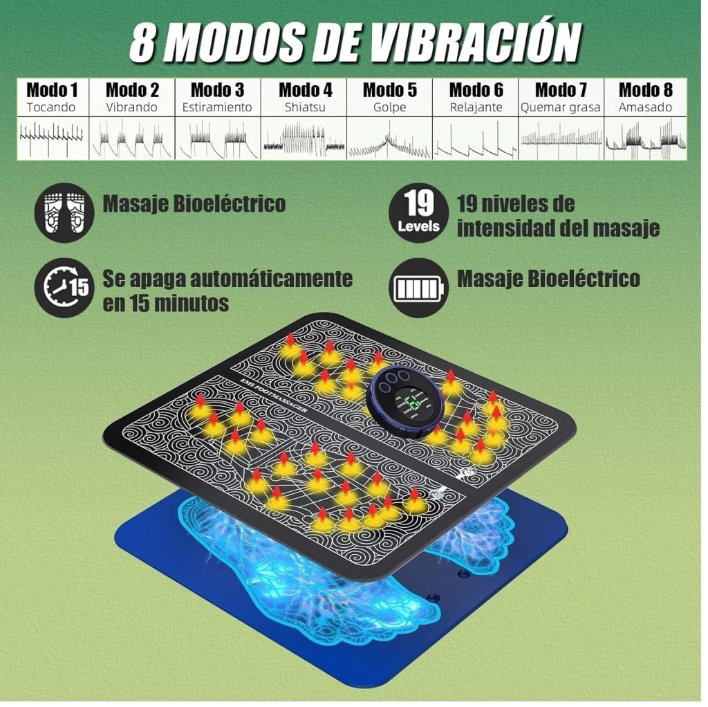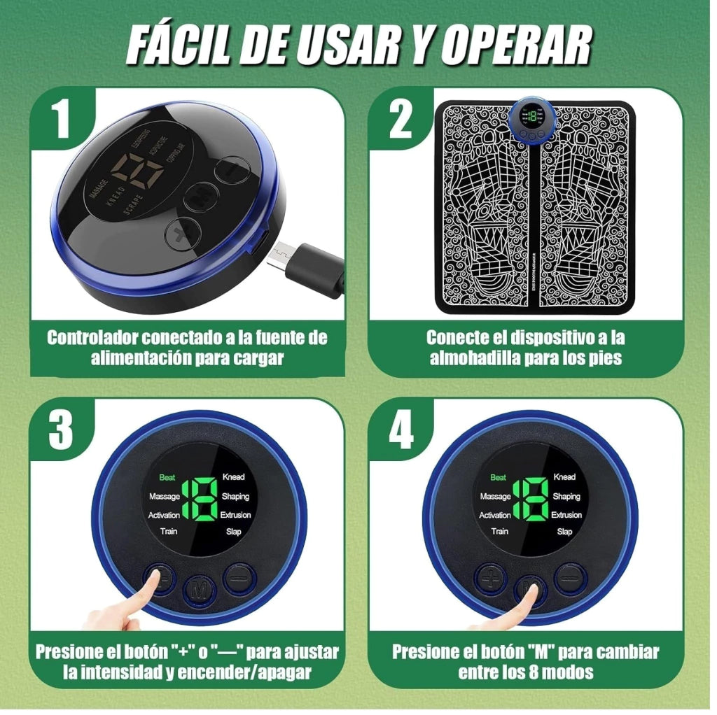Esta avanzada tecnología ofrece una combinación única de masajes profundos que previene calambres, tobillos hinchados, rigidez y dolor de pies. Los pulsos eléctricos activan instantáneamente la circulación sanguínea, reducen la aparición de varices y dan a tus piernas una sensación más ligera.