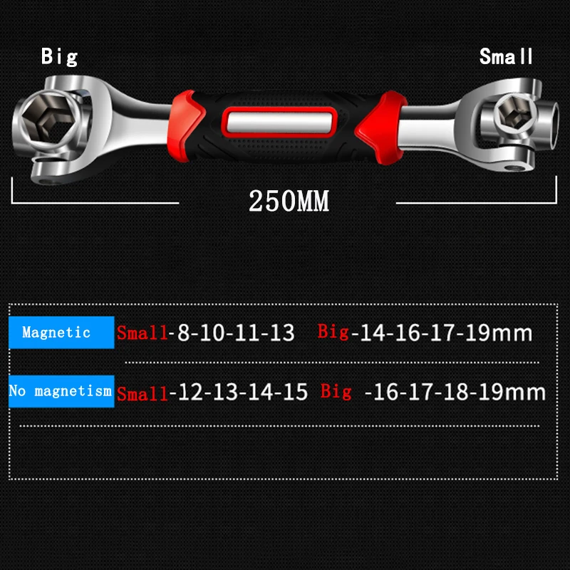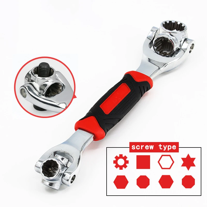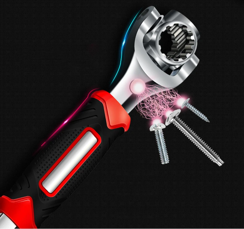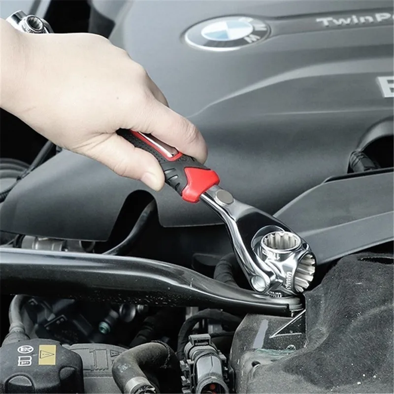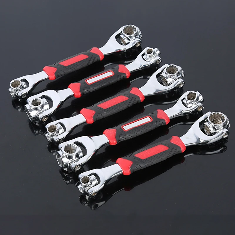 Llave 360 ° multifuncional 48 en 1, llave multiángulo con 6 esquinas, mango de goma
