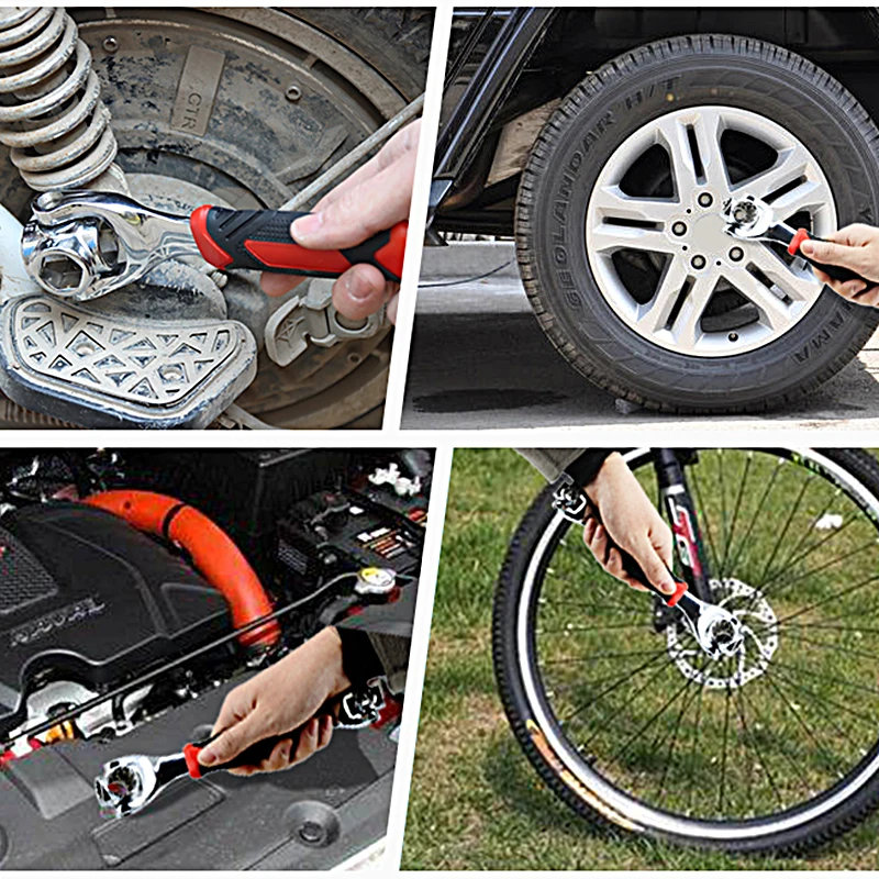 - --- La llave de tubo 48 en 1, la herramienta adecuada para cualquier trabajo simplemente haciendo clic entre los diferentes tamaños o girándola. No necesita múltiples llaves de vaso o juegos de herramientas grandes. No más arrastrar cajas de herramientas pesadas.